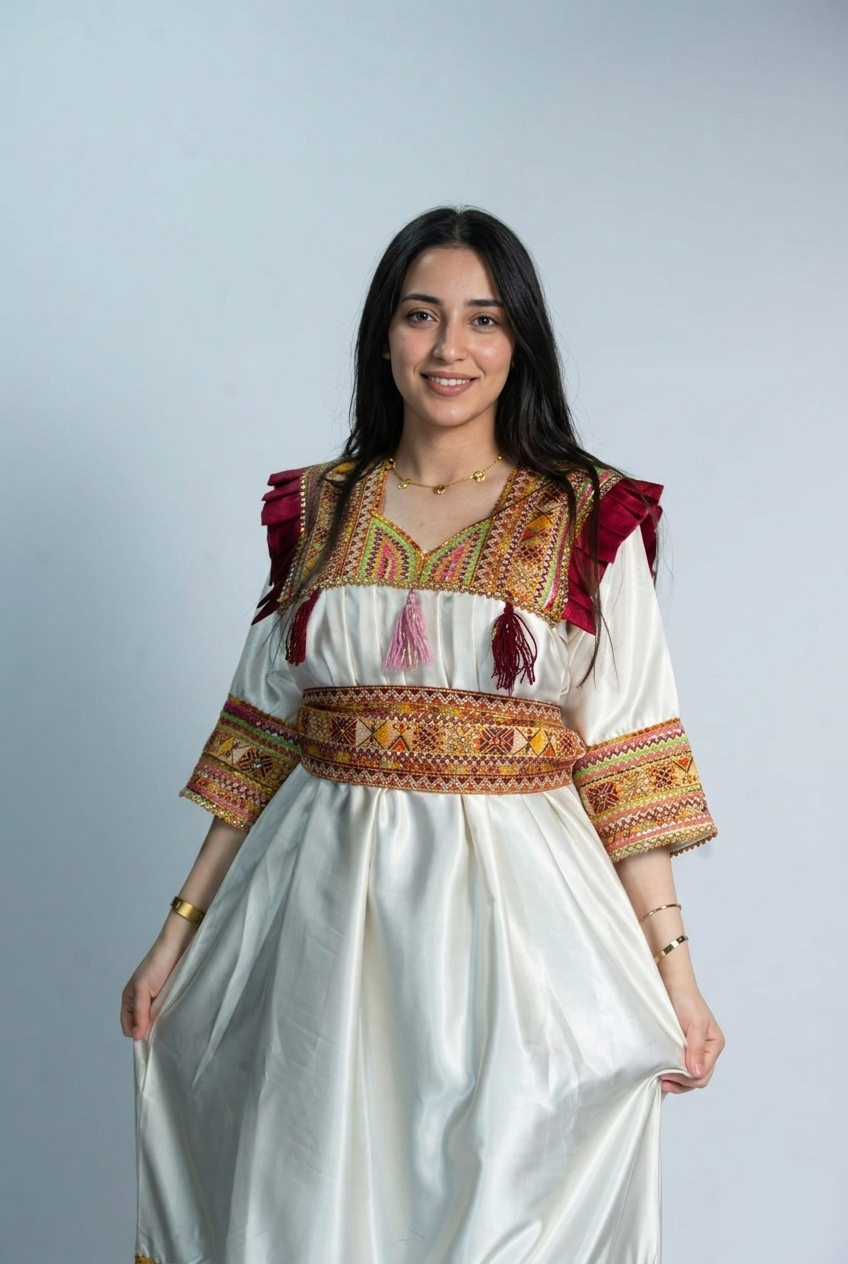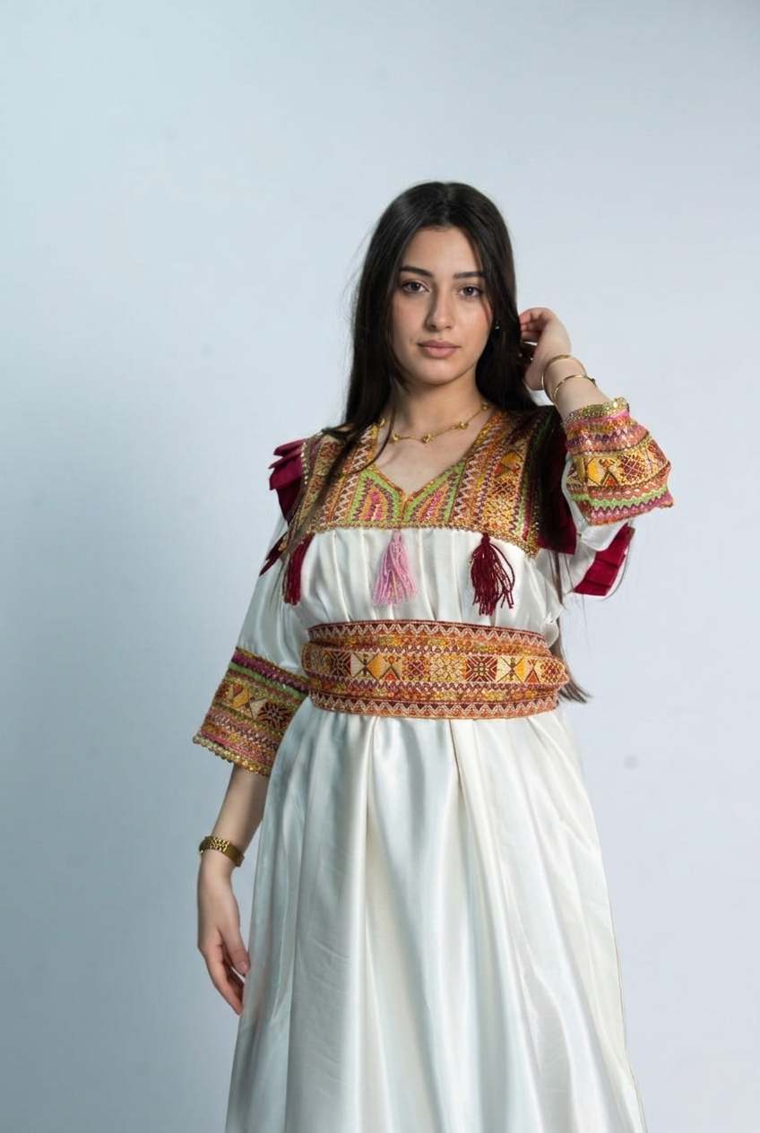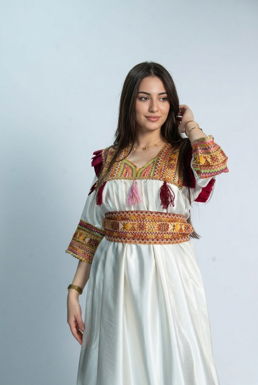 Paiement à la livraisonCette magnifique robe kabyle allie authenticité et raffinement grâce à ses broderies traditionnelles et son tissu fluide qui offre confort et élégance. Parfaite pour les fêtes et les occasions spéciales.